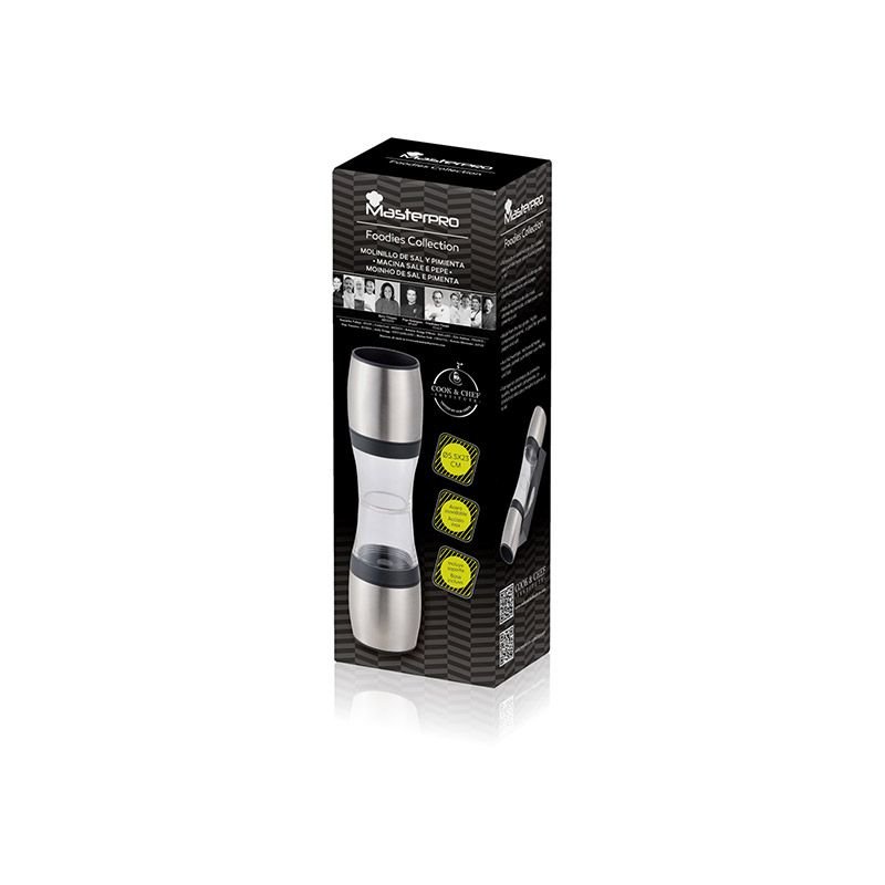 Met deze peper & zoutmolen van Masterpro kruid jij makkelijk je vlees zoals jij dat wil. De molen is voorzien van twee hervulbare kanten, waardoor jij je peper en zout altijd dichtbij hebt. Daarnaast is de kruidmolen voorzien van een houder.