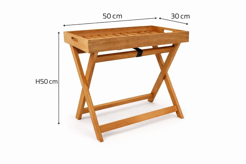 • gemakkelijk opbergen: vouwbaar houten frame met afneembaar dienblad