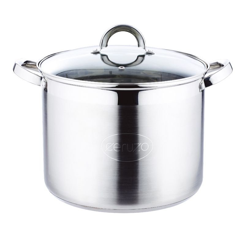 Kook de lekkerste gerechten voor een groot gezelschap met deze grote soeppan van Ceruzo. Door zijn inhoud van maar liefst 20 liter is het de ideale kookpan voor een grote hoeveelheid soep of eigengemaakte stamppot. De pan is gemaakt van roestvrijstaal en is geschikt voor alle warmtebronnen, ook voor inductie. De soeppan wordt geleverd met een glazen deksel en is vaatwasmachinebestendig.