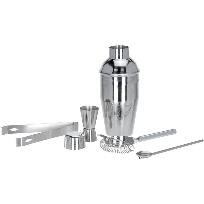 Cocktailset Rvs – 5-Delig – Cocktailshaker – Lepel – Klopper – Maatbeker – Ijstang