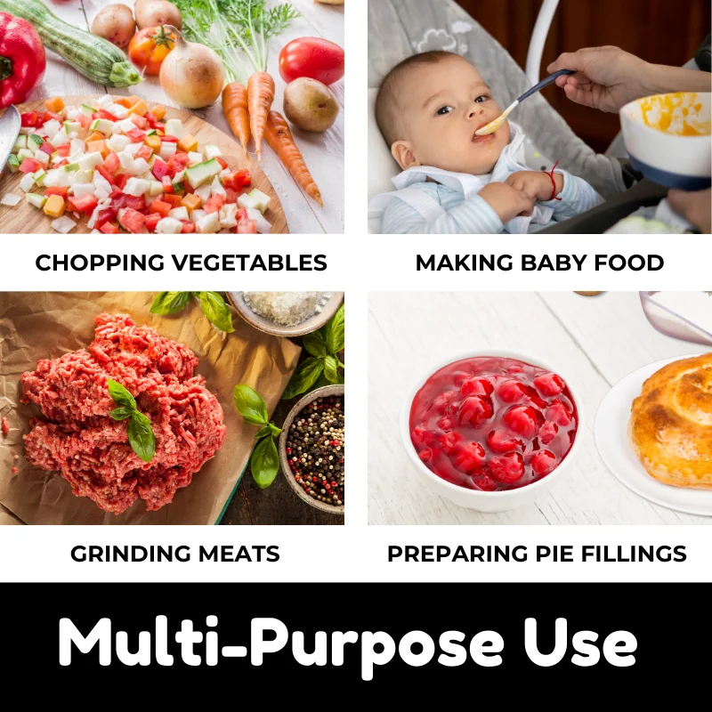 - 1000W multifunctionele motor – De krachtige 1000W motor kan gemakkelijk verschillende ingrediënten hakken, mengen, mixen en malen, van vlees tot groenten, waardoor u tijd en moeite bespaart in de keuken.