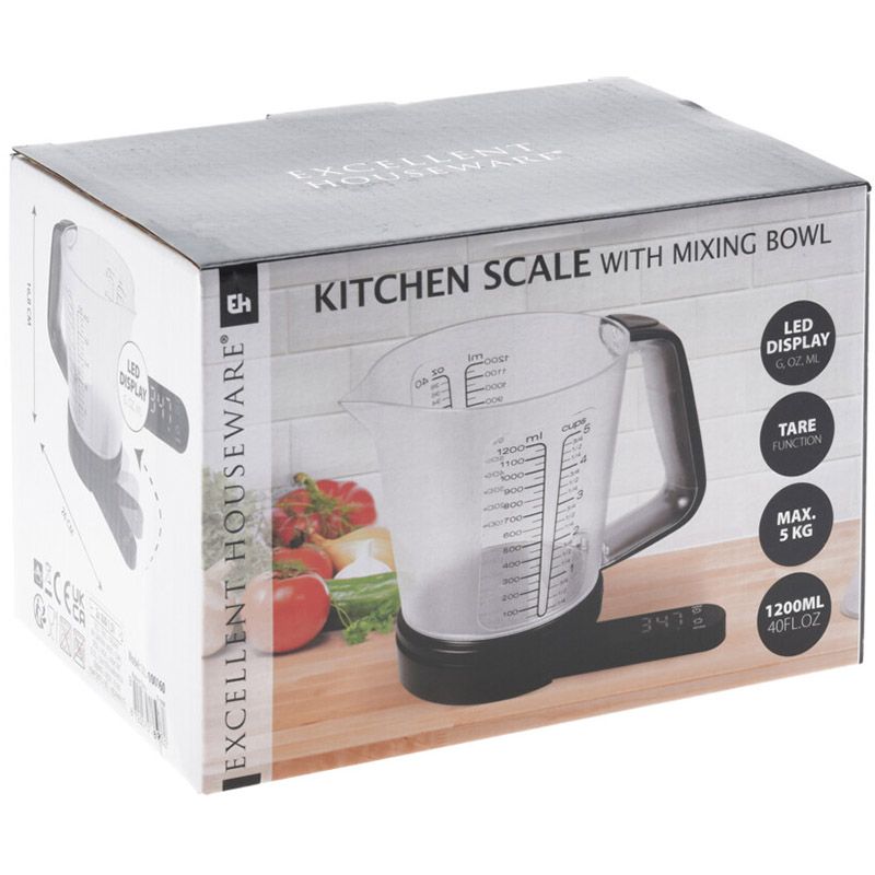 Excellent Houseware Keukenweegschaal Met Maatbeker – 1200 Ml – Tot 5 Kg