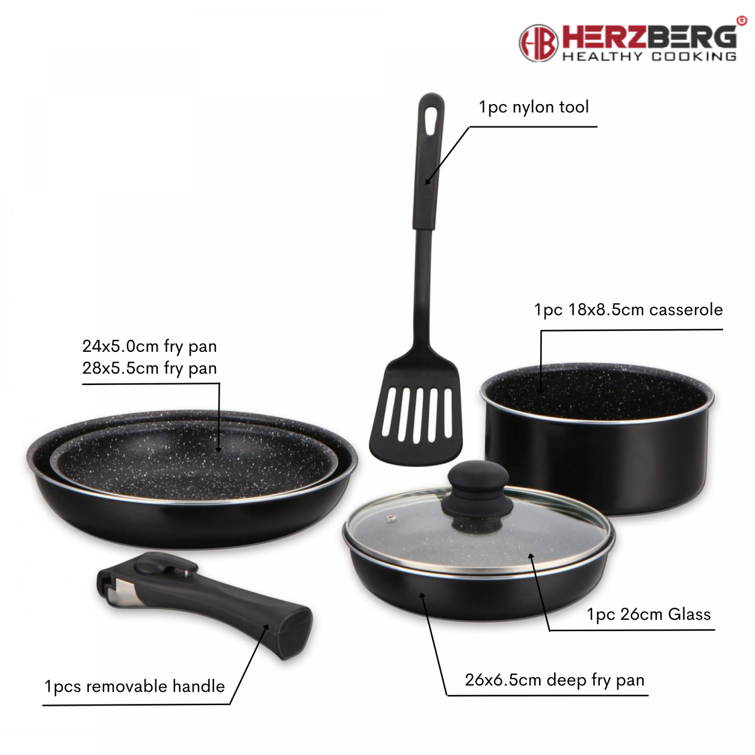 Herzberg HG-8090-7BK: 7-Delige pannenset met marmercoating