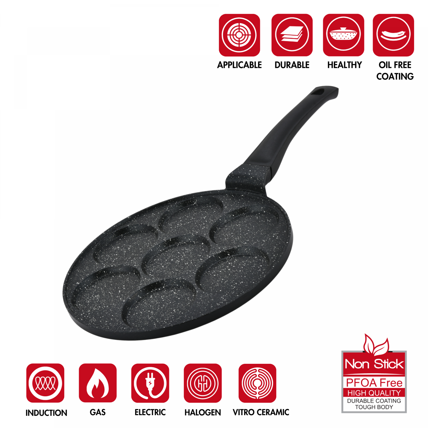 Herzberg HG-CP267HO: 26cm Pannenkoek- En Cr?pepan Met Marmeren Coating – 7 Gladde Gleuven