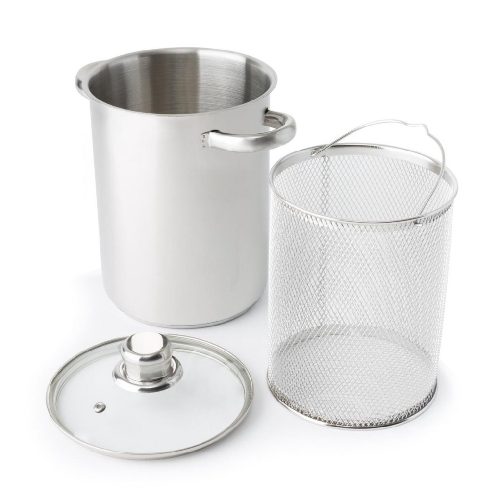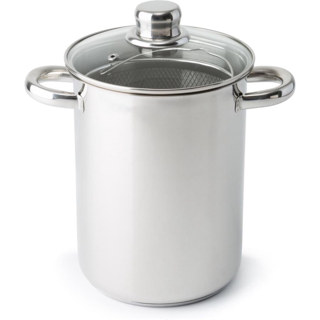 Handige rvs asperge-pastapan van Imperial Kitchen. Uniek aan deze aspergekoker is dat hij naast het verticaal koken van asperges, witloof of andere groenten zich ook perfect leent voor de bereiding van pasta’s.