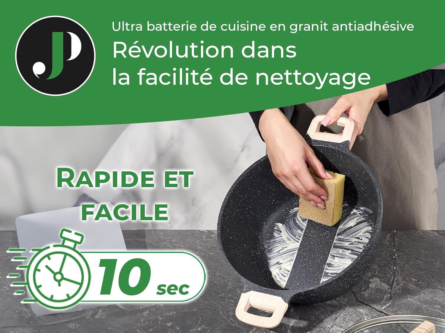 - Duurzaam granieten oppervlak – Versterkt met een krasbestendige graniettextuur, ontworpen voor dagelijks koken. Het behoudt soepele prestaties, zelfs bij frequent gebruik.
