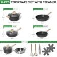 - Producttype: 15-delige granieten kookset met stoomfunctie