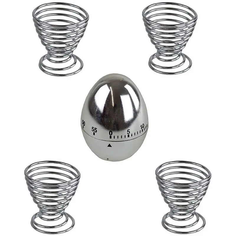 - 4 sierlijke eierdopjes (diameter 5cm, hoogte 5,5cm) en een kookwekker (tot 60 minuten)