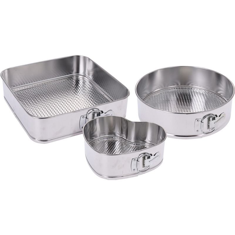 Met deze springvormen bak je de lekkerste taarten en cakes. In deze set zitten maar liefst 3 bakvormen. 1 ronde, 1 vierkante en 1 hartvormige. Dankzij de uitneembare bodems zijn de springvormen makkelijk schoon te maken. De afneembare randen zorgen ervoor dat de zelfgebakken taarten ook rondom gedecoreerd kunnen worden. Na het bakken zijn de vormen goed op te bergen, gezien ze in elkaar geplaatst kunnen worden.