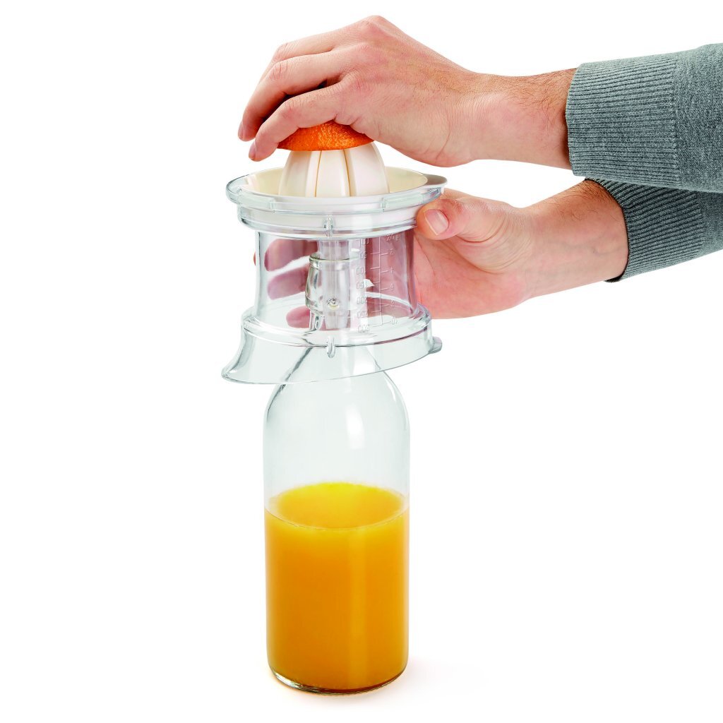 Metaltex citruspers met verwisselbare perskegels is een nieuwe innovatieve oplossing van Metaltex. De innovatieve verzamelcontainer maakt direct persen in flessen of sapkannen mogelijk. Met de twee verschillende perskegels kunnen zowel kleine als grote citrusvruchten eruit worden geperst. De kunststof container heeft een praktische maateenheid en een antislip bodem voor een stevige stand tijdens het persproces.