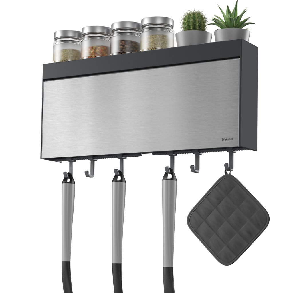 - Verstelbaar en flexibel: kies tussen de keukenpapierhouder die op rollen van elk formaat past, of de set van 6 haken om keukengerei op te hangen. Ook te gebruiken voor het neerzetten van kruidenpotjes.