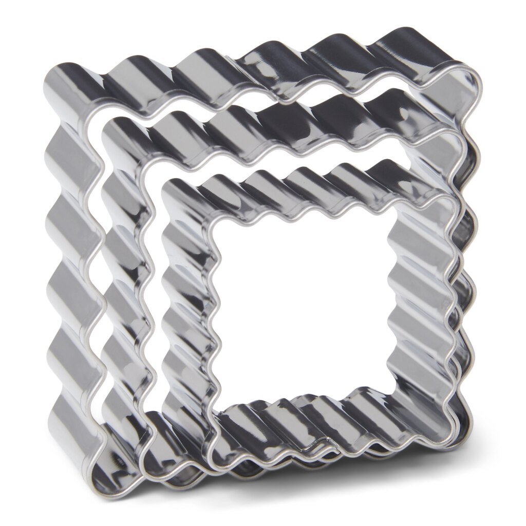3vierkante uitsteekvormen vanPatisse in verschillende groottes (ca. 3,5 cm,4,5 cm, 5,5 cm). Van hoogwaardig RVS.