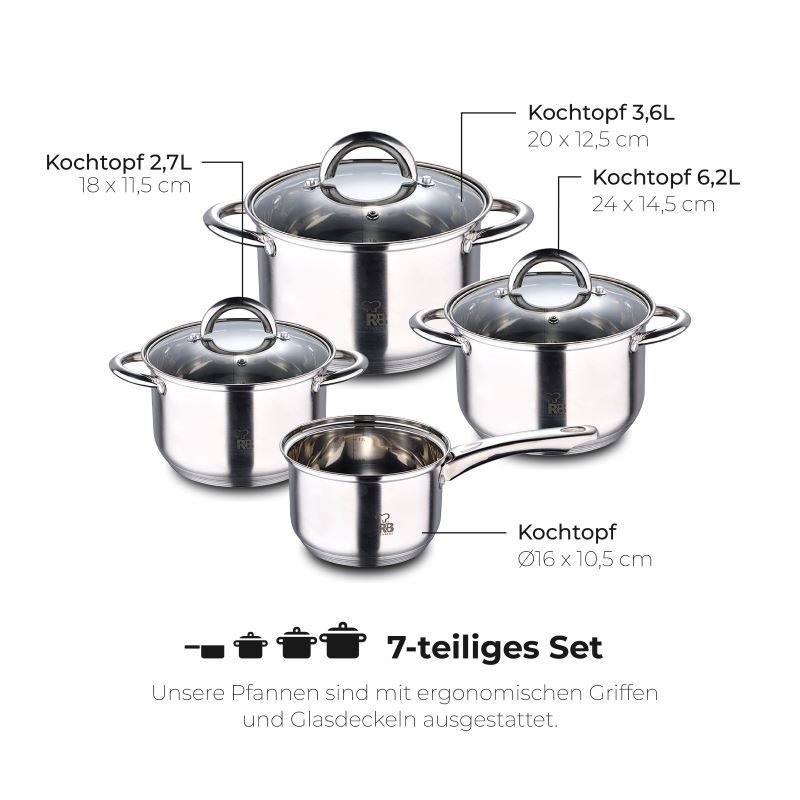Renberg Alexander Pannenset Rvs – Inductie – 7 Delig – 4 Kookpannen ? 16 – 18 – 20 – 24 Cm + 3 Deksels