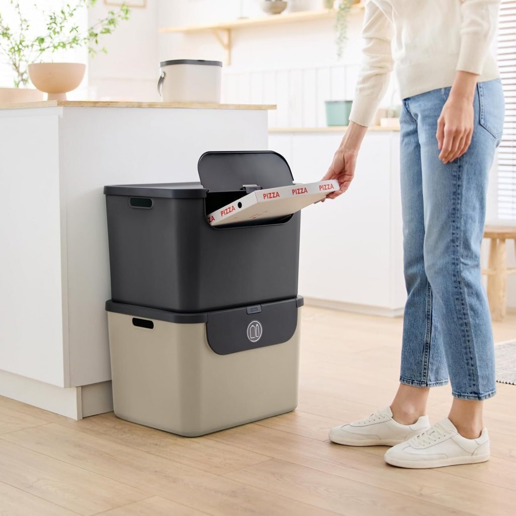 - Duurzame afvalscheiding: afvalscheidingssysteem met deksel en twee handige draaggrepen