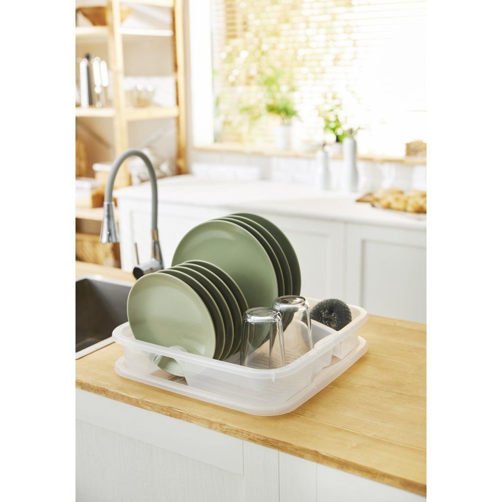 Het Rotho Geometric afdruiprekafdruiprek mag niet ontbreken in je spoelbak, zodat je na urenlang afspoelen en drogen je goede humeur niet verliest na een lekkere maaltijd.De praktische keukenhulp biedt veel ruimte, je vaat droogt milieuvriendelijk.Dankzij een lekbak is je werkblad beschermd tegen krassen en kalkvlekken.Het lichtgewicht afdruiprek is ook ideaal voor het opbergen van serviesgoed tijdens een kampeervakantie.