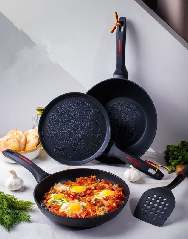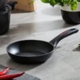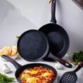 • Moderne en elegante zwarte afwerking – Met een strakke zwarte buitenkant met een verfijnde marmeren binnenkant verbetert deze koekenpan niet alleen de prestaties, maar voegt ook een stijlvolle toets toe aan elke keukenopstelling.