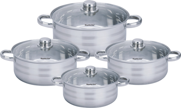 Royalty Line RL-SP7: Roestvrijstalen Kookgerei Set met Deksels – 8 Stuks