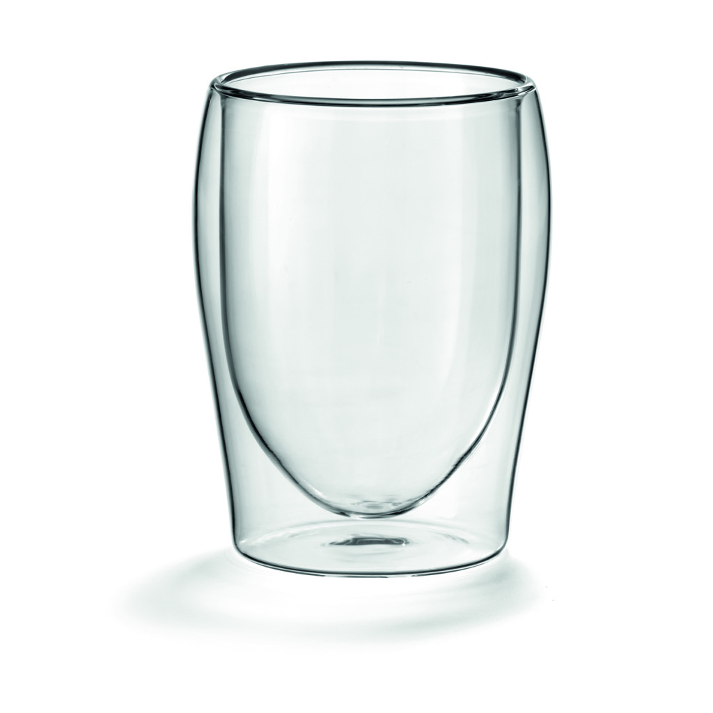 - Het dubbelwandige borosilicaatglas werkt isolerend, zo blijft warme drank warm en koude drank koud.