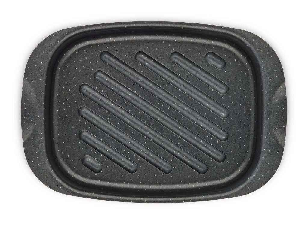 De ribbels in deze braadschotel zorgen ervoor dat het gerecht tijdens het bakken niet in contact komt met het bakvet. Heel gezond dus!